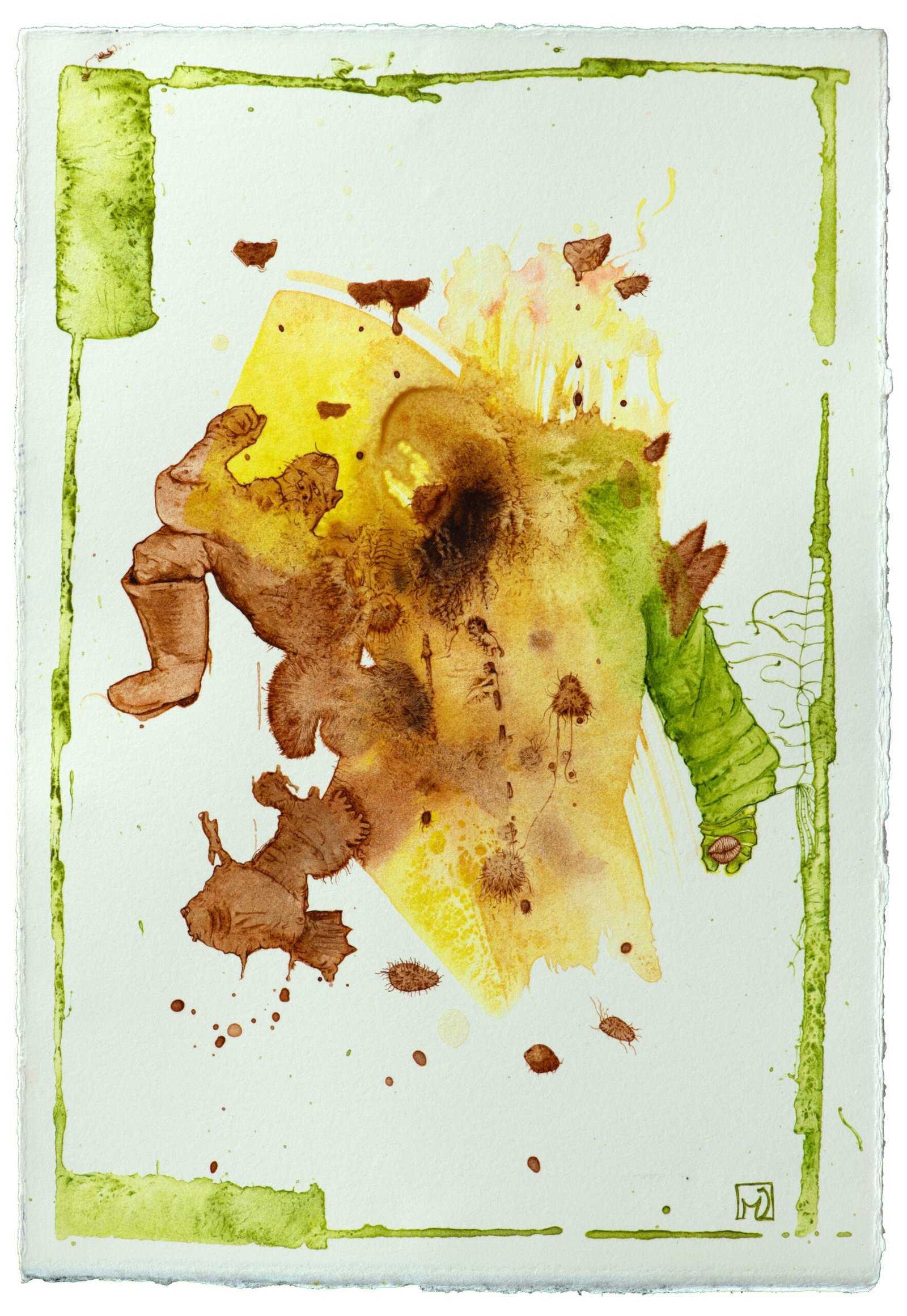 Une tache, un amas de terre, une branche en décomposition ne sont pas seulement des formes issus du hasard, elles sont la porte entrebaillée vers un autre monde. Un monde très personnel issu de mes propres références. Ici, un visage enjoué, une jubarte, un troll, là un cerf, des méduses ou de simples protistes...